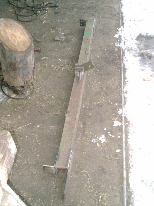 from the counterweight axle. Since the grain hopper was a bit wider than the freezer, we had bent the beams so that they could fit