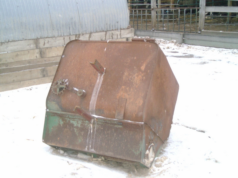 A few months ago, we made our counterweight. A big old grain hopper from a combine filled with concrete.