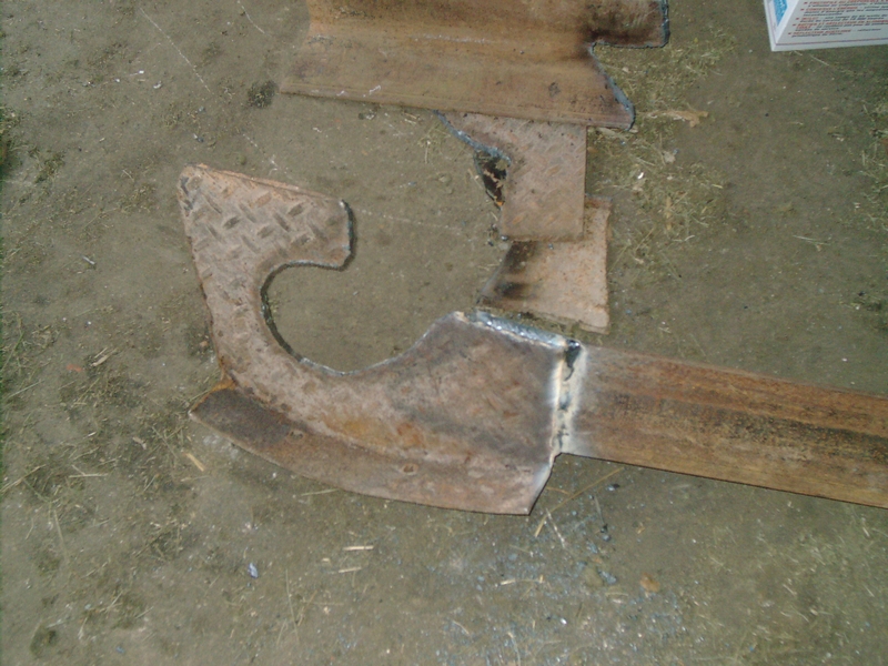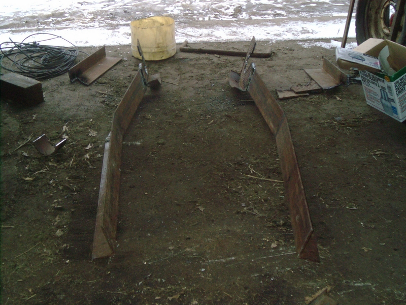 Last night we started by modifying the big chunks of steel that we were planning to use to hang our big concrete-filled grain hopper