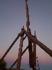We actually got a fair amount of work done this weekend. Huzzah! The first weekend of its kind in a good five weeks or so. On Saturday, Ron and I went and cut a few telephone pole ends off those left in the pile to serve as stakes for the rest of our structure. Since people are always asking about where we got the poles, I took a picture of the pile as it looked before we took more from it on Saturday. It's in the gallery. Later that day, Dave came over and we just played around on the throwing arm, swinging to and fro. It's quite fun. We also fixed the "finger" on the end of the throwing arm. On Sunday we finally finished the main parts of the structure by adding the last two diagonal poles. We're getting pretty good at that. At one point we put one up, only to find that it didn't fit right. So we took it down, re-cut it, and put it back up - all in four minutes. The first time we did that, we only got two up in a whole day. We also discussed some other options for a counterweight. There's an old grain-hopper type of dealy on the farm that could hold almost exactly one cubic yard of concrete, which would weigh over 3,500 lbs, if I recall correctly. Additional weight could be added to that by hanging things on its sides. There's a picture of it, and the old tank, in the gallery. Finally, Ron and I will be stopping at the Pal Steel scrap yard on our way home for Thanksgiving. We plan to buy some steel to somehow be used on our counterweight - so our final plans will hinge on what we can find there. We probably won't be doing anything this coming weekend, however.